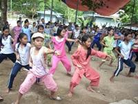 | Các nữ võ sinh luyện võ thuật. Ảnh: T.B. |