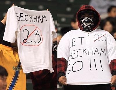 Và theo tờ Daily Mail mới đây, trong trận giao hữu của LA Galaxy với Oita Trinita thì các CĐV đội nhà đã giương cao những chiếc áo đấu và banner tỏ rõ thái độ không muốn Beckham trở lại nước Mỹ.